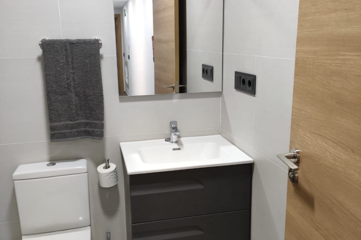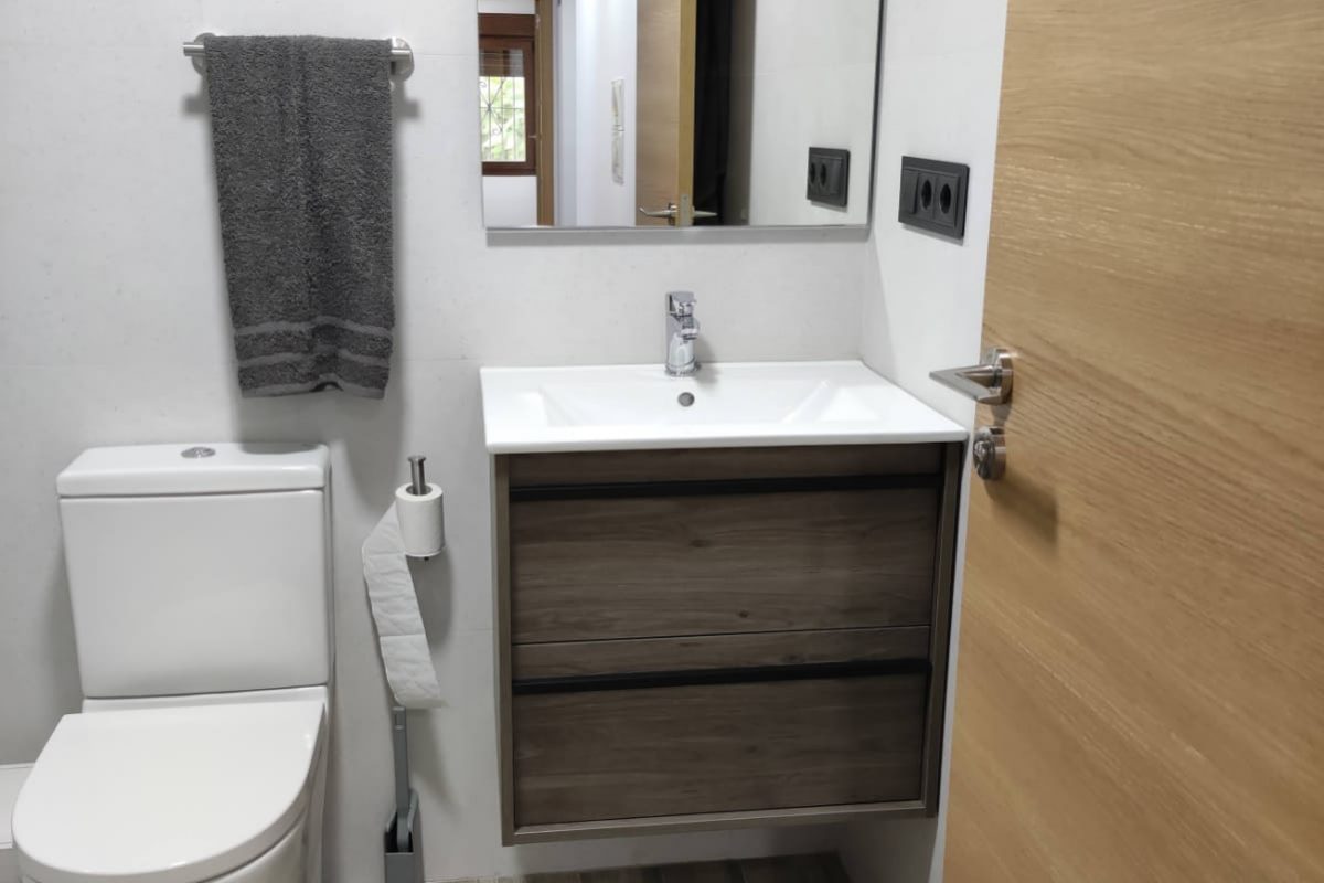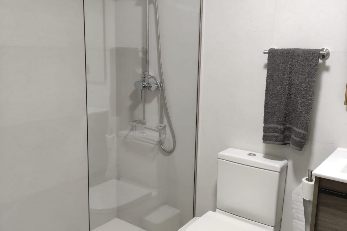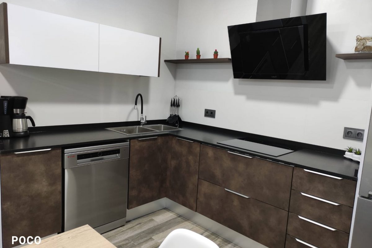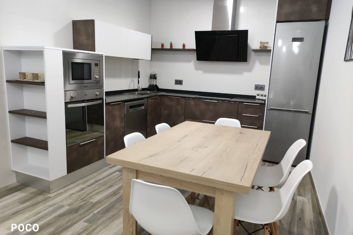 • Cocina completa con vitrocerámica, horno, microondas, frigorífico combi, lavavajillas, cafetera, vajilla, cubiertos, utensilios de cocina, productos de limpieza.