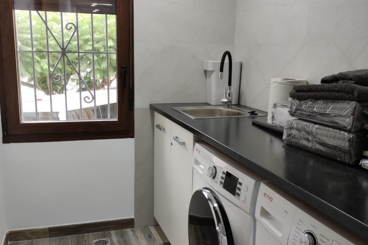 • Zona de lavandería con lavadora, secadora y plancha de ropa.