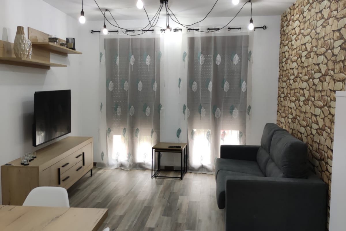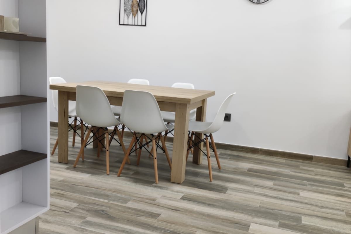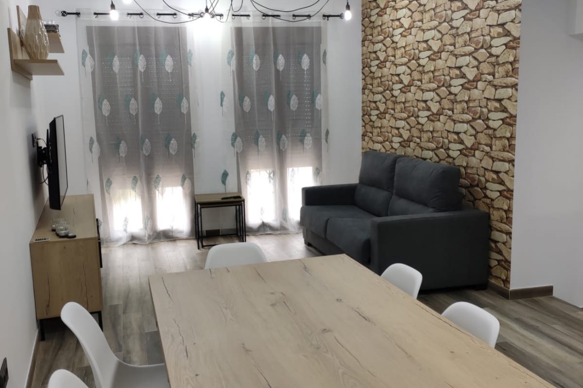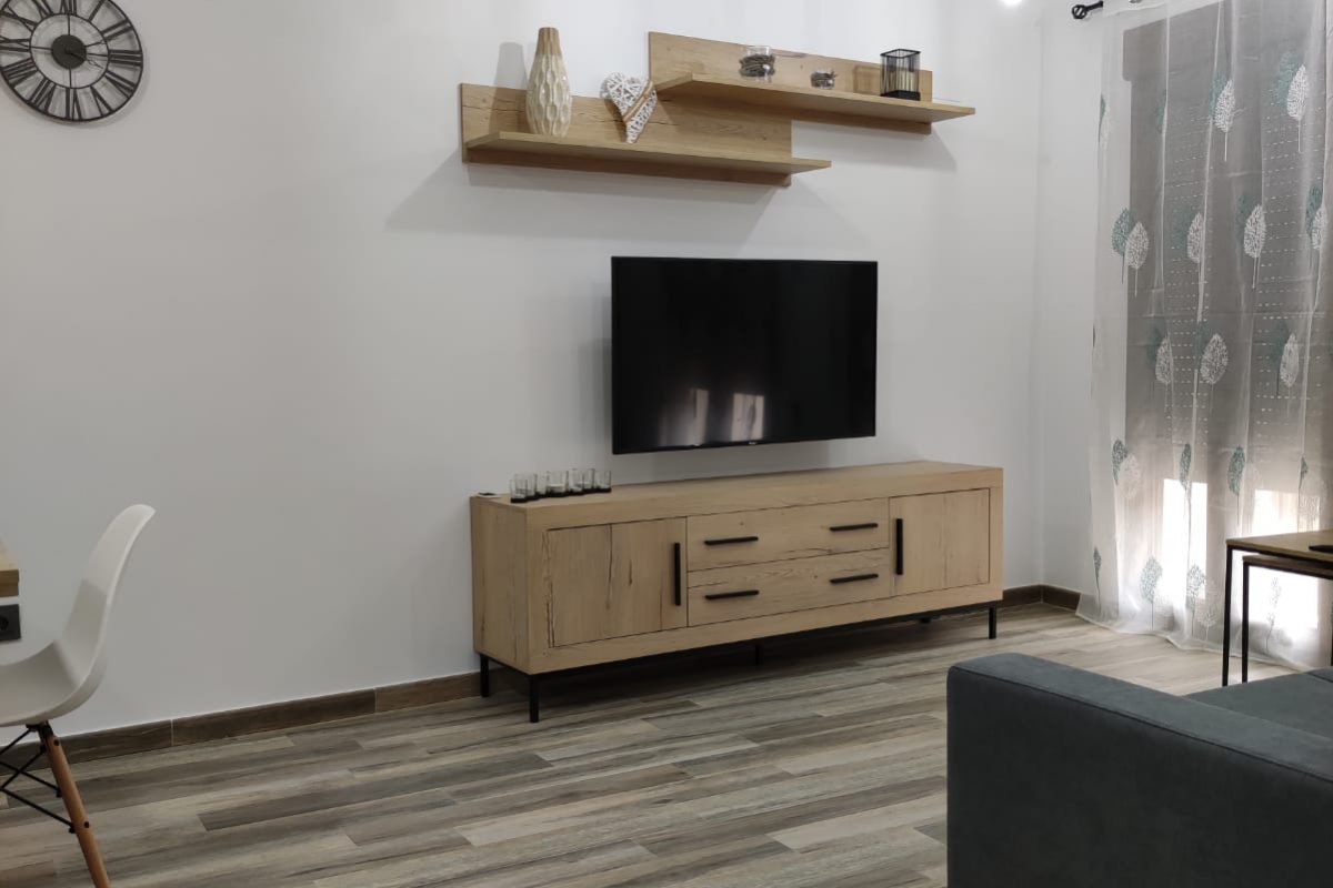 • Salón con Smart TV 50", sofá-cama, mesa y sillas.